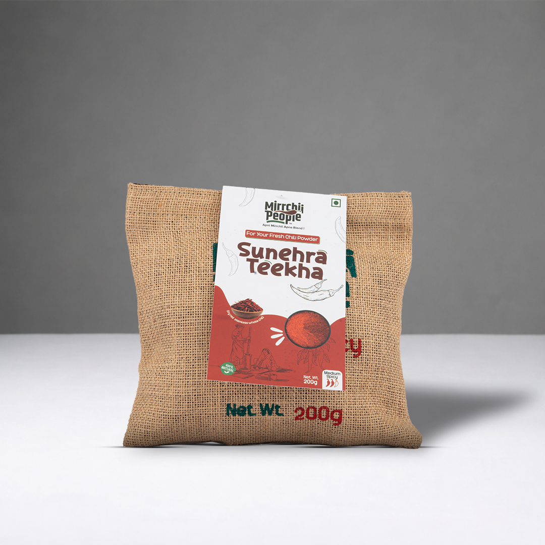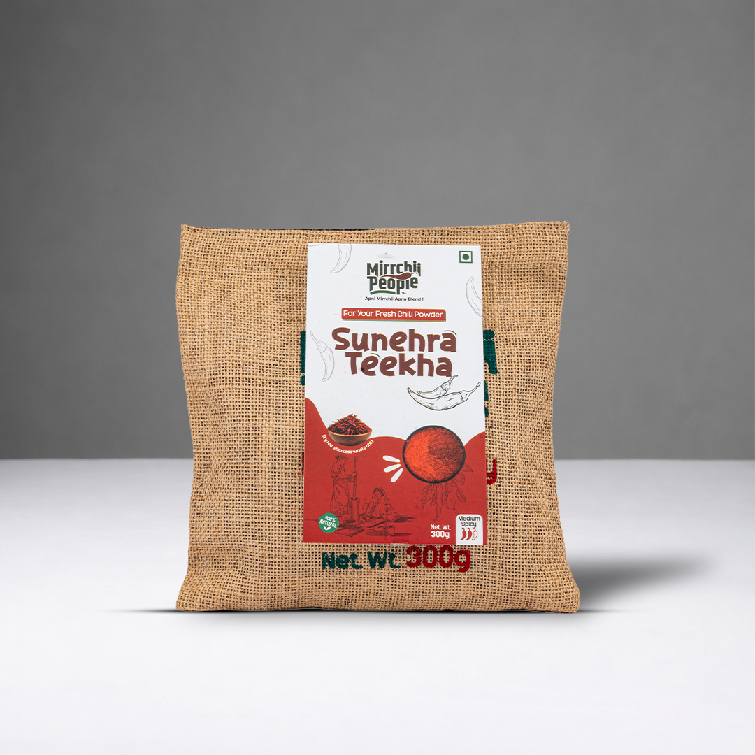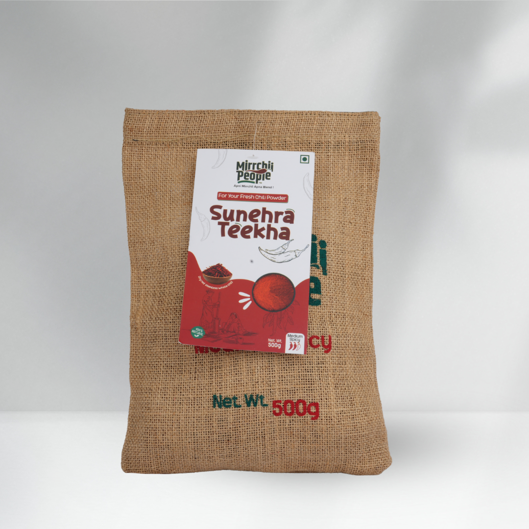 Sunehra Teekha offers a warm, balanced heat with a naturally bright colour, ideal for those who prefer medium-spicy chilli powder without compromising on flavour. Its mellow aroma and smooth spice profile blend beautifully into daily cooking, making it perfect for curries, sabzis, gravies, and marinades. Fresh, finely ground, and free from artificial additives, it brings gentle flavour to every meal.
